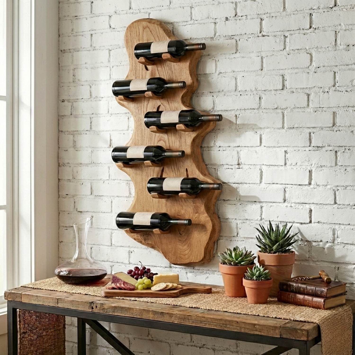 Contemporary Live Edge Solid Wood Dining Table with Architectural Base
