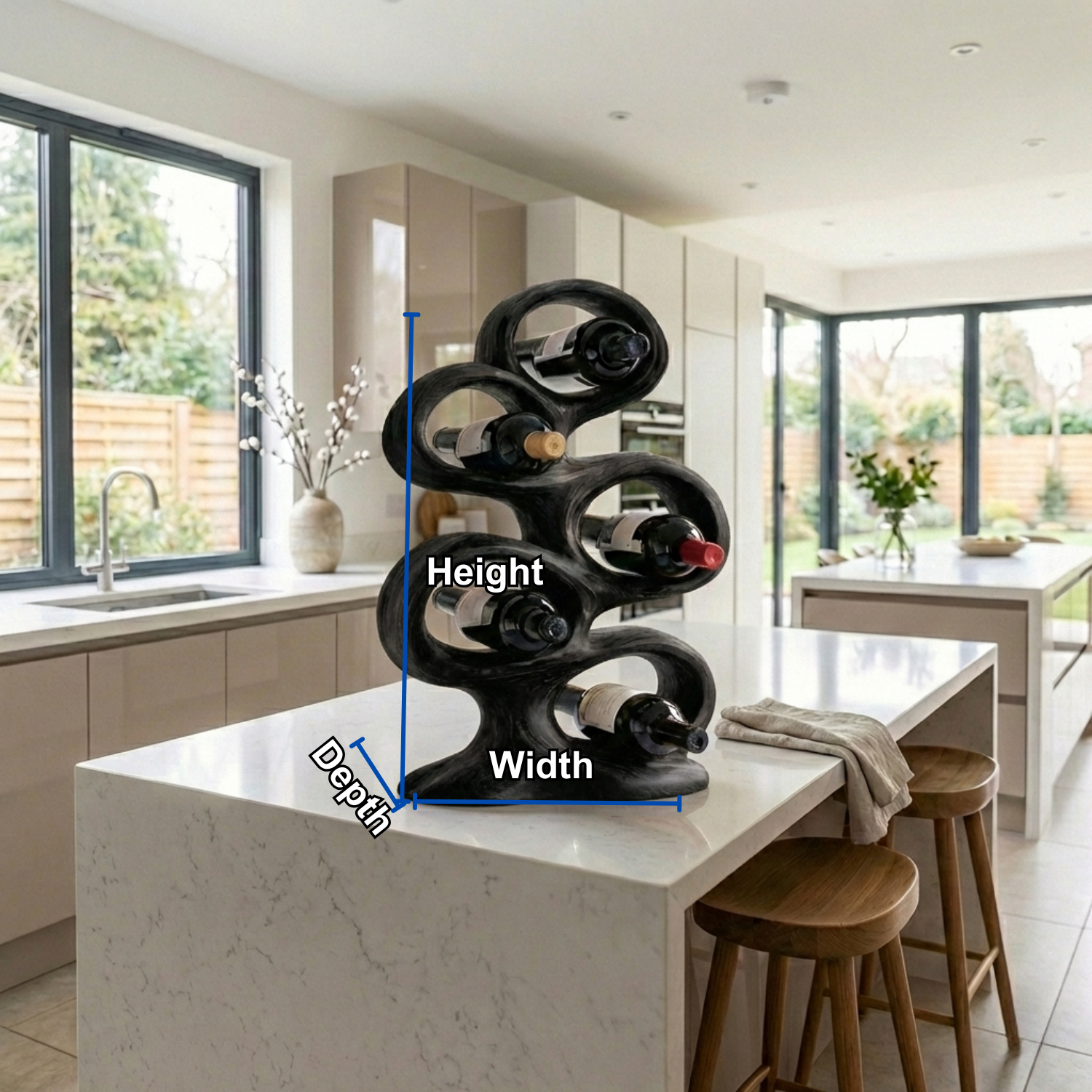 Transform your kitchen island or home bar into a refined focal point with this handcrafted solid wood wine holder. Designed in a flowing looped, sculptural form, this piece blends modern design with organic warmth, turning wine storage into functional art.